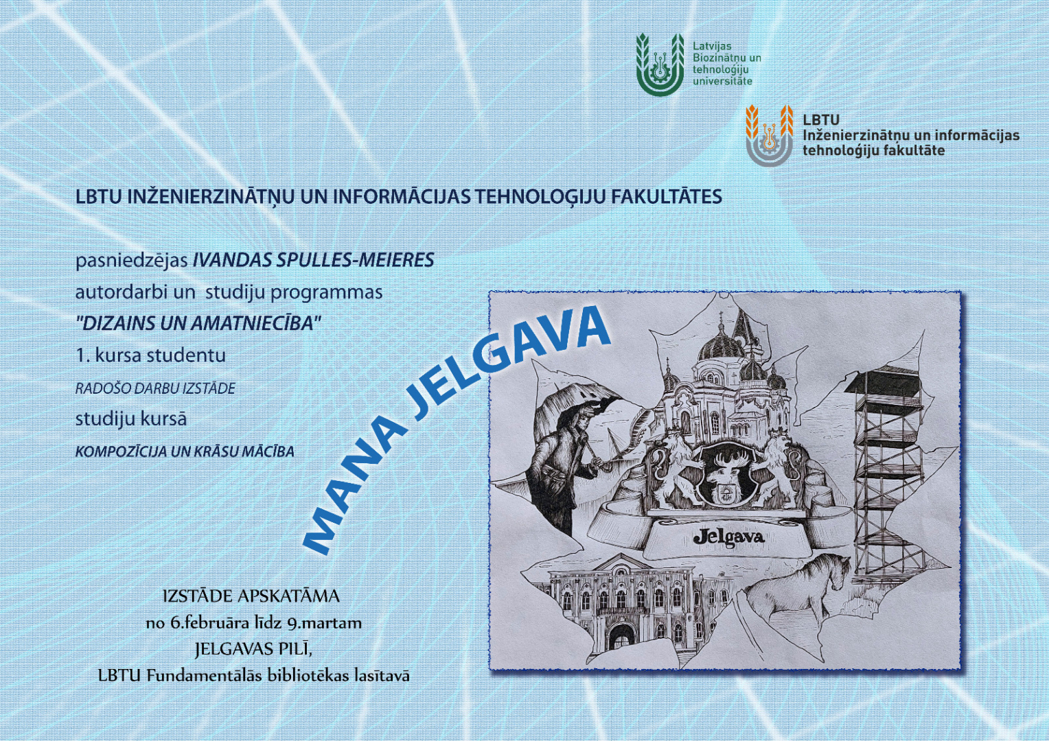 Inženierzinātņu un informācijas tehnoloģiju fakultātes studiju programmas "Dizains un amatniecība" studentu darbu izstāde "Mana Jelgava"